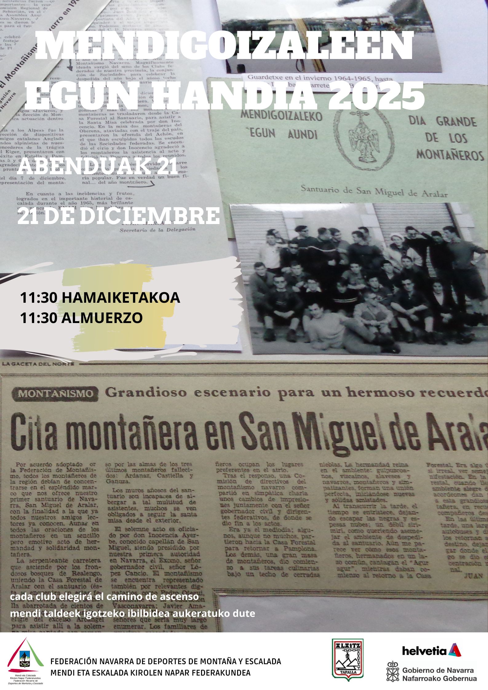 El próximo domingo 21 celebraremos una nueva edición del Mendigoizaleen Egun Handia organizado por el club Alaitz. Como es habitual, cada club elegirá el camino de ascenso y a las 11.30 nos juntaremos para almorzar.